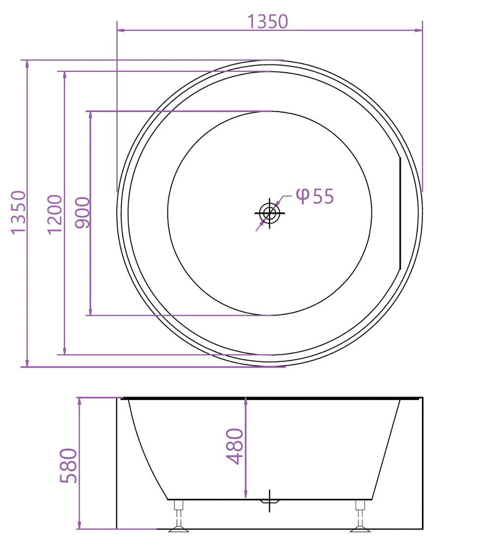 BROADWAY FS19 FREESTANDING ROUND BATH – WHITE ACRYLIC (1350MM | 1400MM | 1500MM)