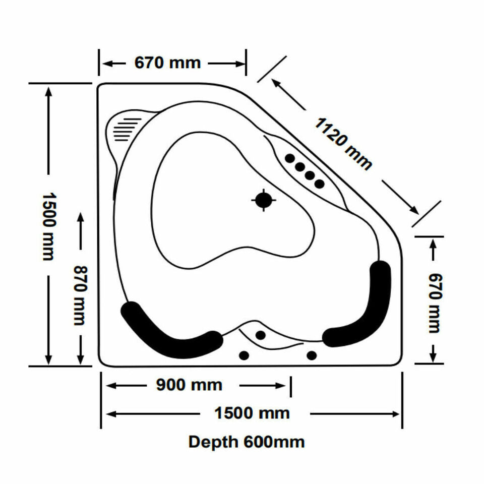 A premium-quality Australian-made spa bath built for comfort, hydrotherapy, and contemporary elegance. The SAPPHIRA 1500mm corner spa features 18 strategically placed jets, spacious dimensions, and modern control options to elevate your bathroom into a personal wellness retreat.