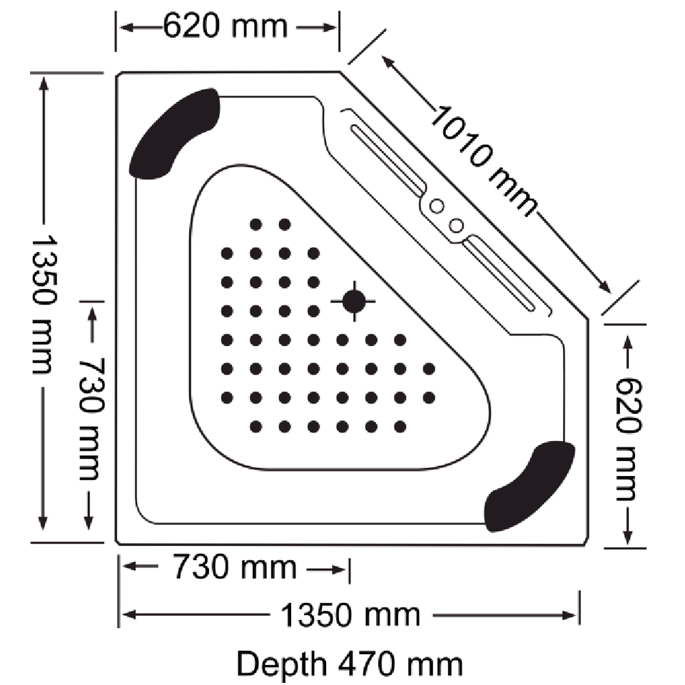 Dimensions: 1350 x 1350 x 470 mm