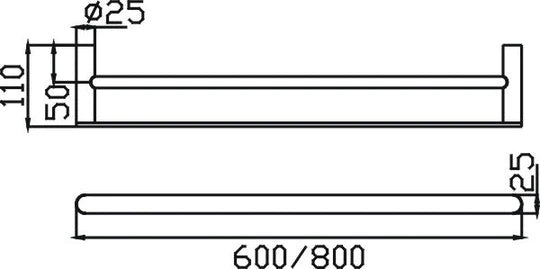 Double rail design – 600mm length for additional towel storage