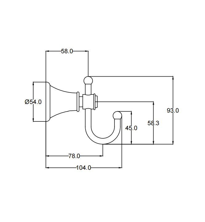 The IKON CLASICO robe hook features a timeless design crafted from durable brass, making it a stylish and reliable accessory for any bathroom. Available in four premium finishes—Chrome, Brushed Nickel, Matte Black, and Brushed Gold—it complements the IKON CLASICO range and pairs seamlessly with a wide selection of tapware and bathroom fittings.