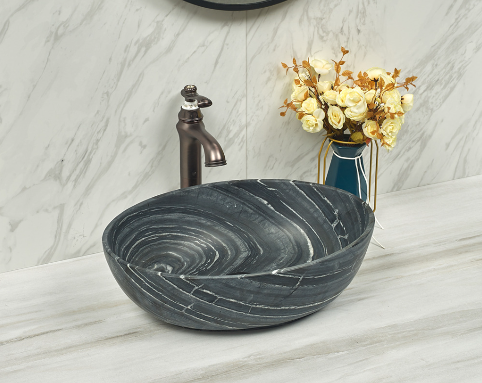 Introduce elegance and artisanal charm to your bathroom with this oval mosaic marble-look basin. Perfect for above-counter installation, it brings a handcrafted feel and timeless appeal to contemporary interiors.