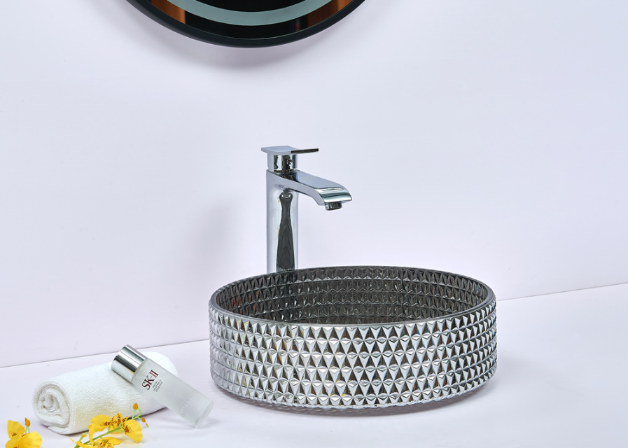 With a sleek metallic finish and minimalist shape, the Infinity 395mm Round Silver Glass Basin delivers a modern, reflective aesthetic to your bathroom. Made from durable tempered glass, this basin pairs functionality with a shimmering finish—perfect for contemporary or high-end vanity designs.