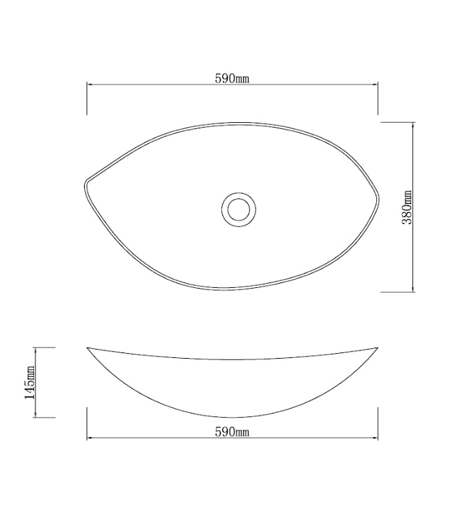 Size: 590mm (W) × 380mm (D) × 145mm (H), Thickness: 12mm