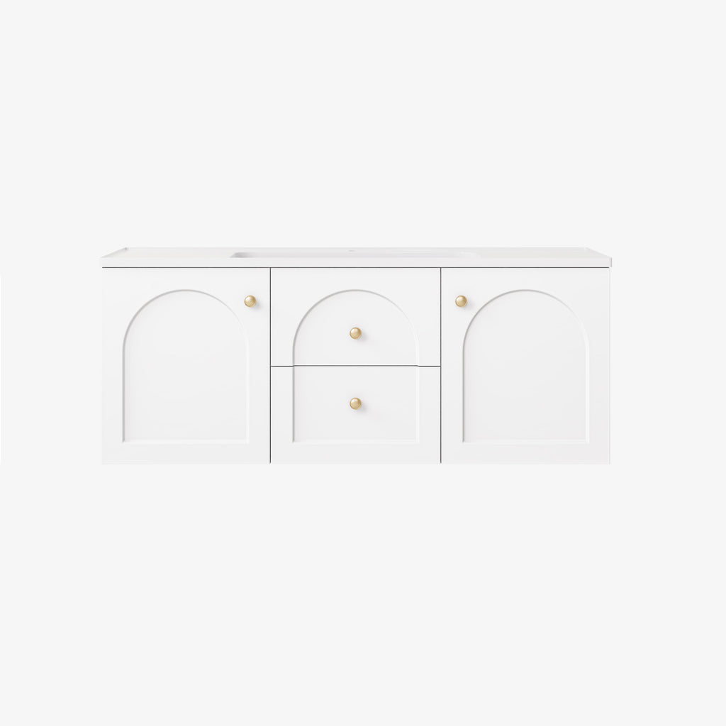 The Lukka Chester Federation Wall-Hung Vanity brings a sophisticated and pristine appeal to your bathroom, featuring its classic Federation Style design and elegant Matt White finish. This versatile vanity series offers a full range of sizes and bowl configurations, ensuring a perfect fit for any bathroom layout, from compact powder rooms to spacious master ensuites.