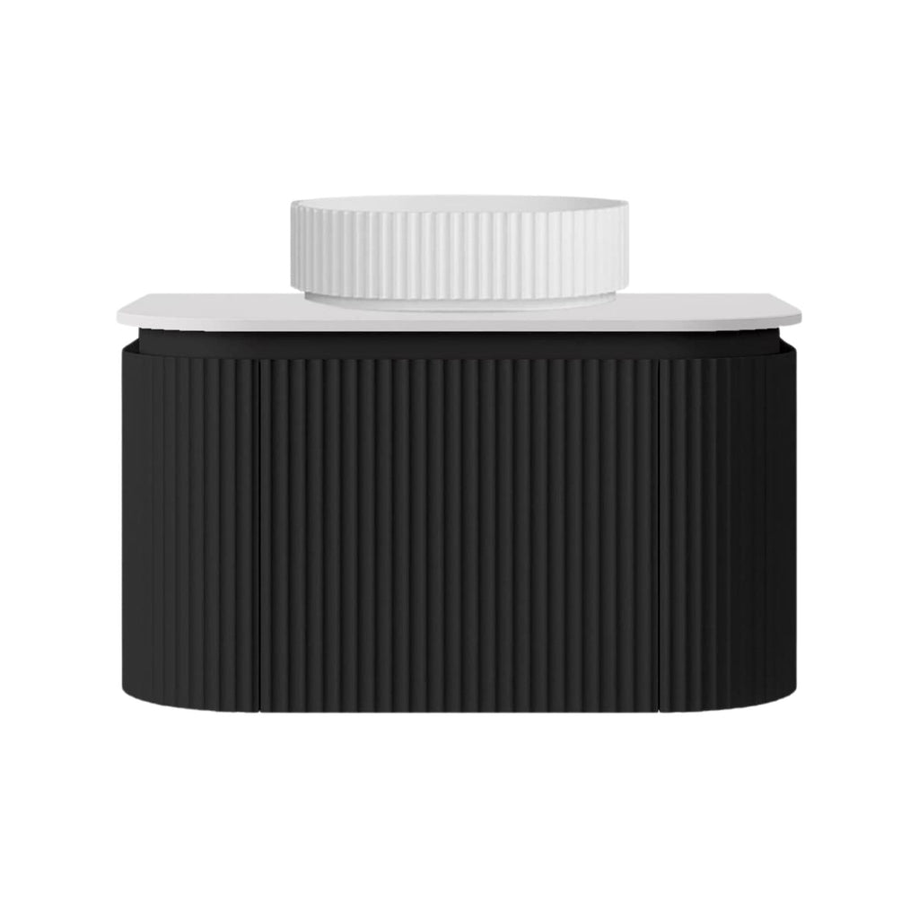 Exclusively at Secasa Home: The Lukka Estella Curve Wall Hung Vanity in a striking Matte Black finish. This premium vanity is defined by its signature curved drawer edges, delivering a sophisticated, soft-modern look and exceptional functionality for high-end bathrooms.