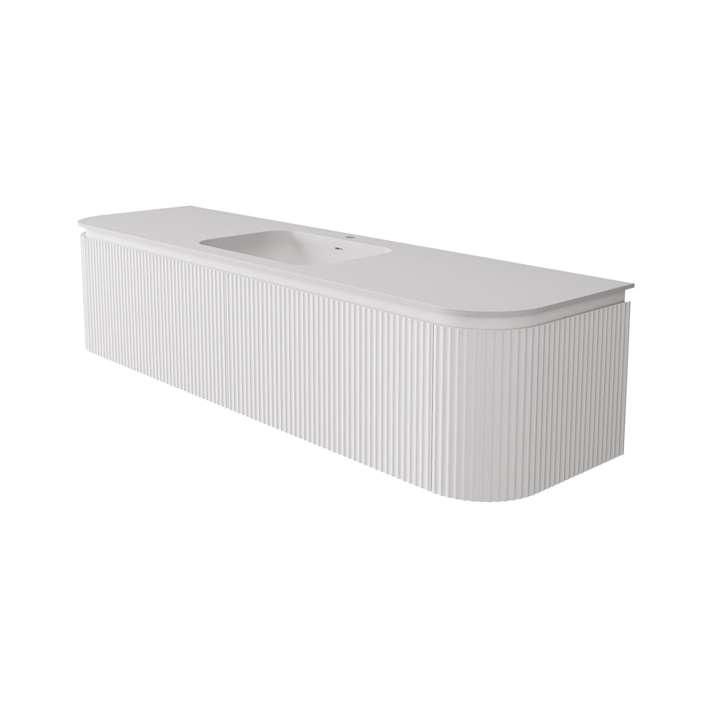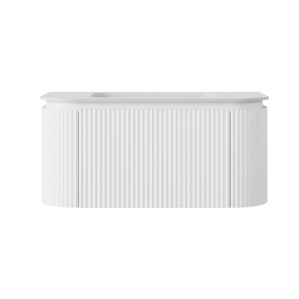 Exclusively at Secasa Home: The Lukka Estella Curve Wall Hung Vanity in an elegant Matte White finish. This premium vanity is defined by its signature curved drawer edges, delivering a sophisticated, soft-modern look and exceptional functionality for high-end bathrooms.