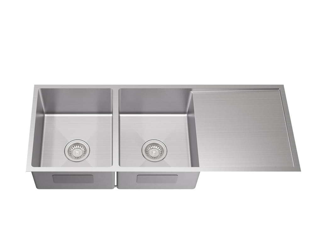 The Kliff Stainless Steel Double Bowl Sink (SKU: LK-SDK1140) is a high-end kitchen sink combining durability and style. Crafted from robust 1.2 mm thick stainless steel with R15 radius corners, this sink offers two equally sized bowls alongside an integrated drainer. With dimensions of 1140×450×230mm and bowl sizes of 340×340×230mm, it provides generous capacity for multitasking in the kitchen.