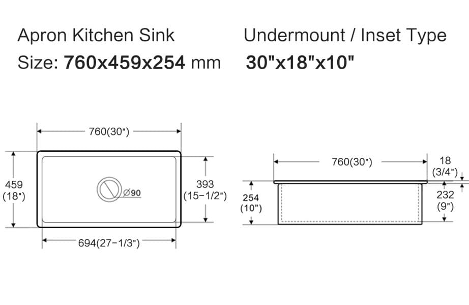 - 1 × Procida Fireclay Sink (LK-S-PFC760)