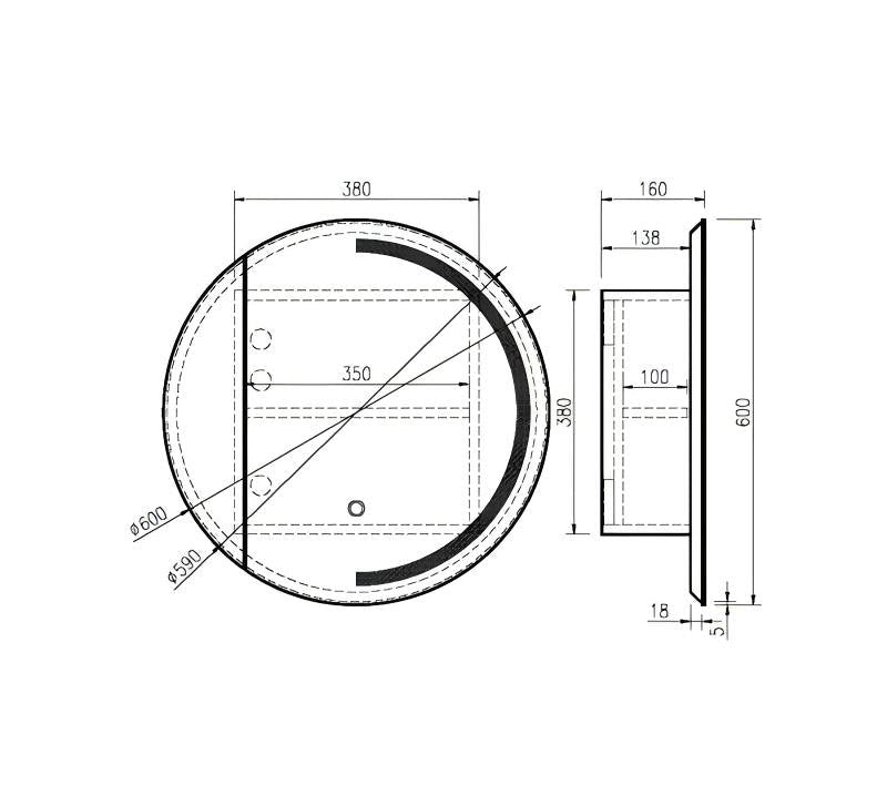 - 1 × Athena LED Round Shaving Cabinet (Selected Size)