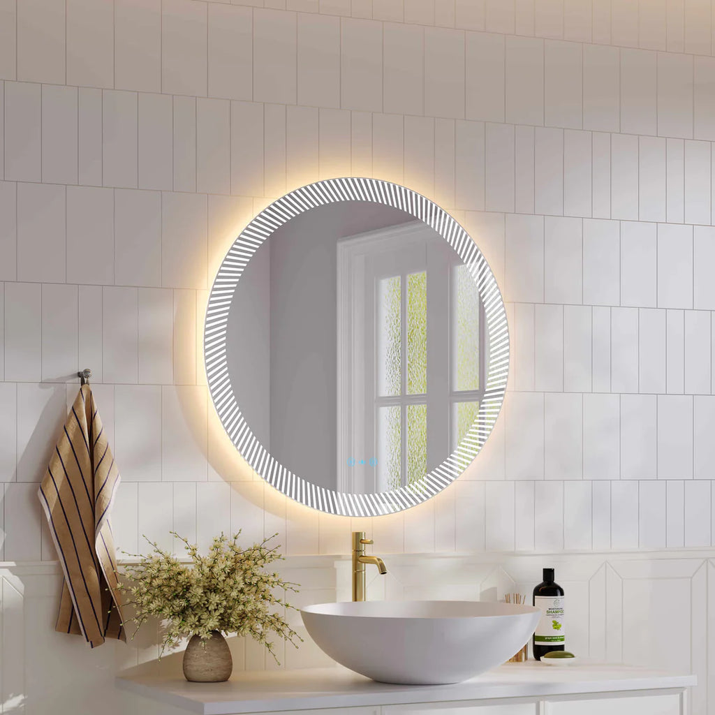 The Freya Textured Round Mirror stands out with its distinctive etched-light effect, combining elegant minimalism with smart functionality. Ideal for enhancing both modern bathrooms and commercial spaces, it delivers a perfect balance of style, comfort, and advanced features.