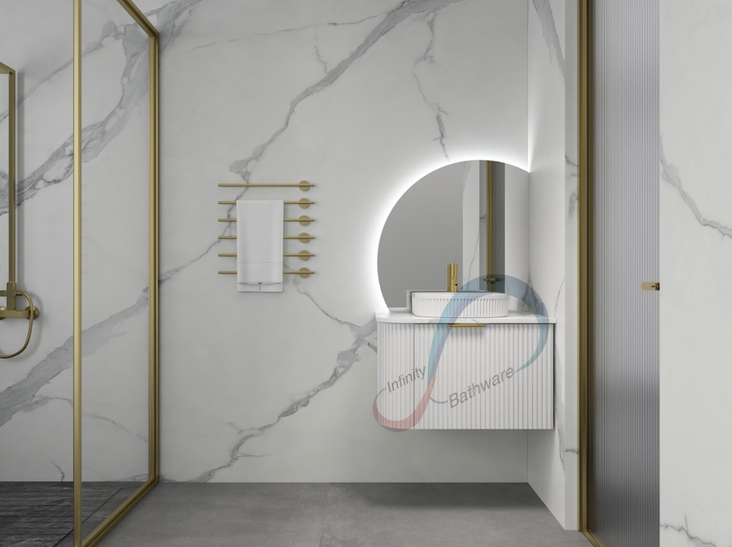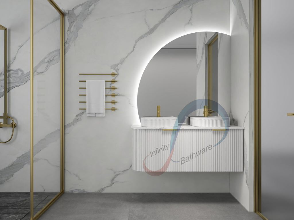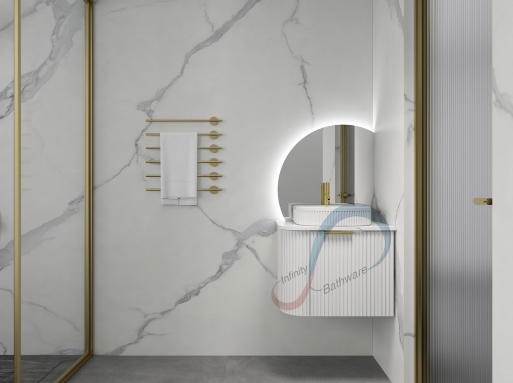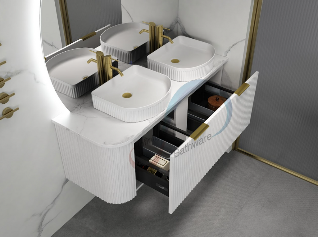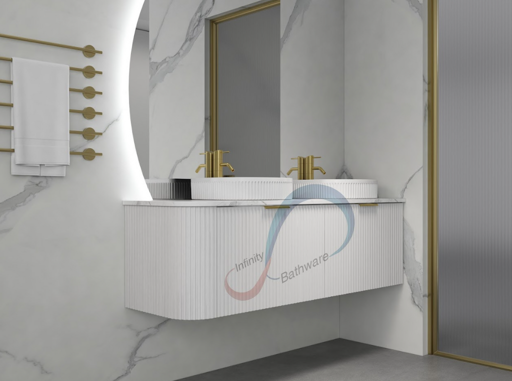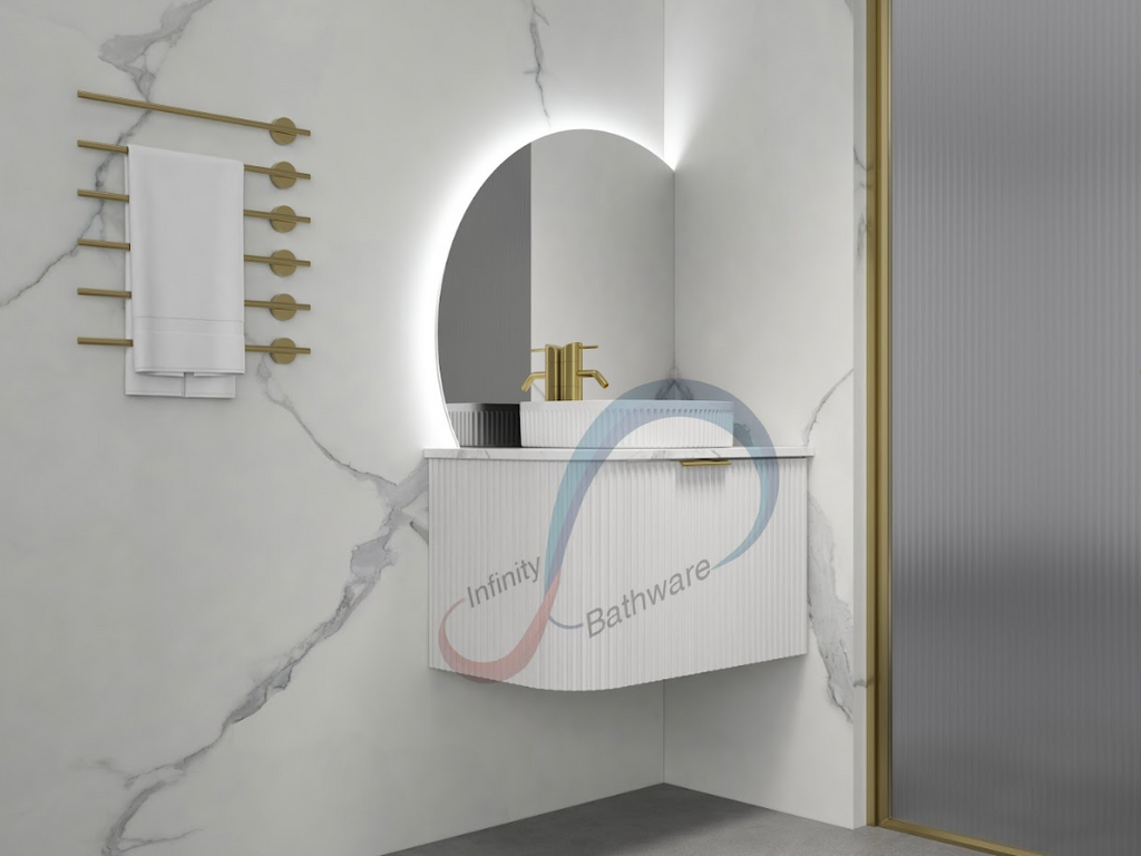 INFINITY Rio Right Corner Fluted Wall Hung Vanity – Matte White | 600–1500mm