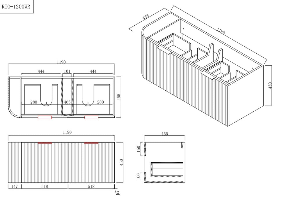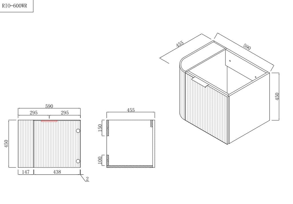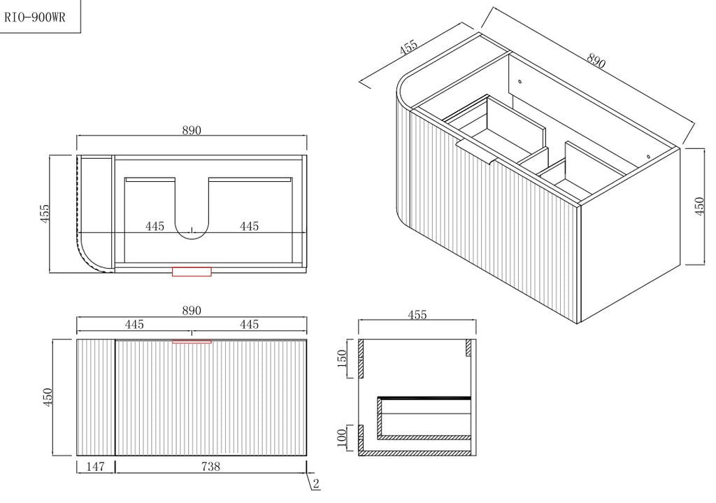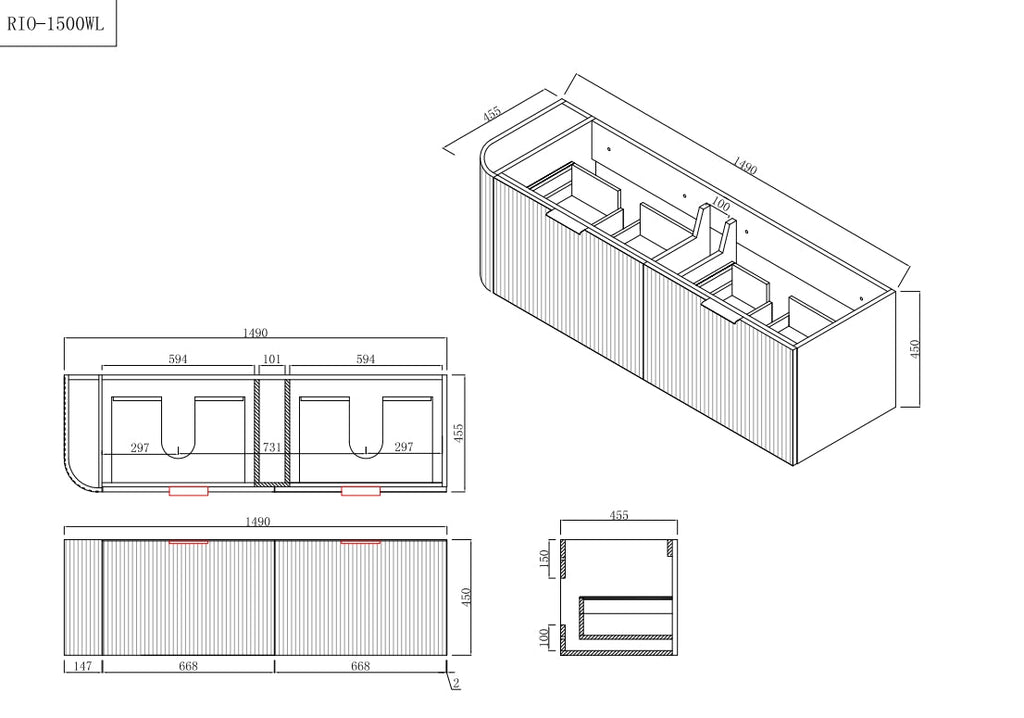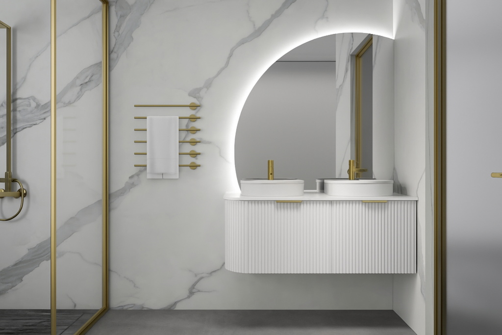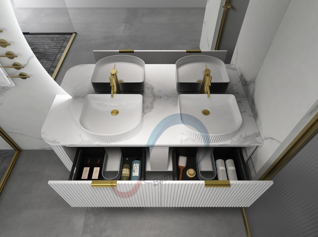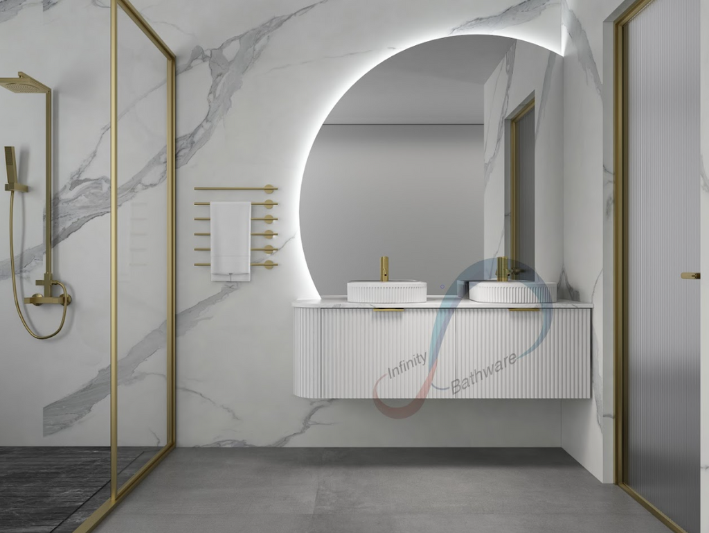 INFINITY Rio Right Corner Fluted Wall Hung Vanity – Matte White | 600–1500mm