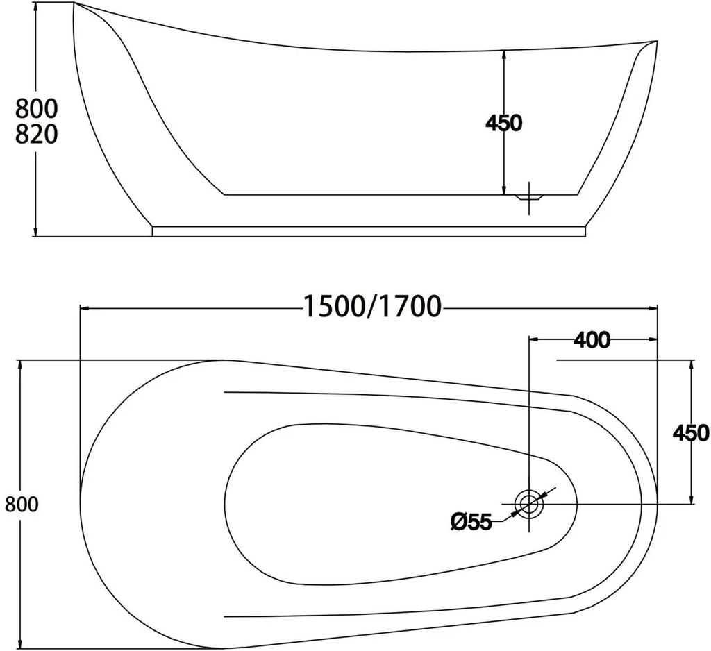 RIVA BELLA Freestanding Bathtub – Gloss White Oval Acrylic Bath (1500mm & 1700mm)