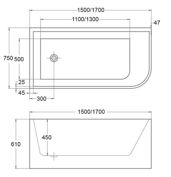 RIVA ELLIE Corner Gloss White Acrylic Back To Wall Bathtub – | Available in 1500mm & 1700mm