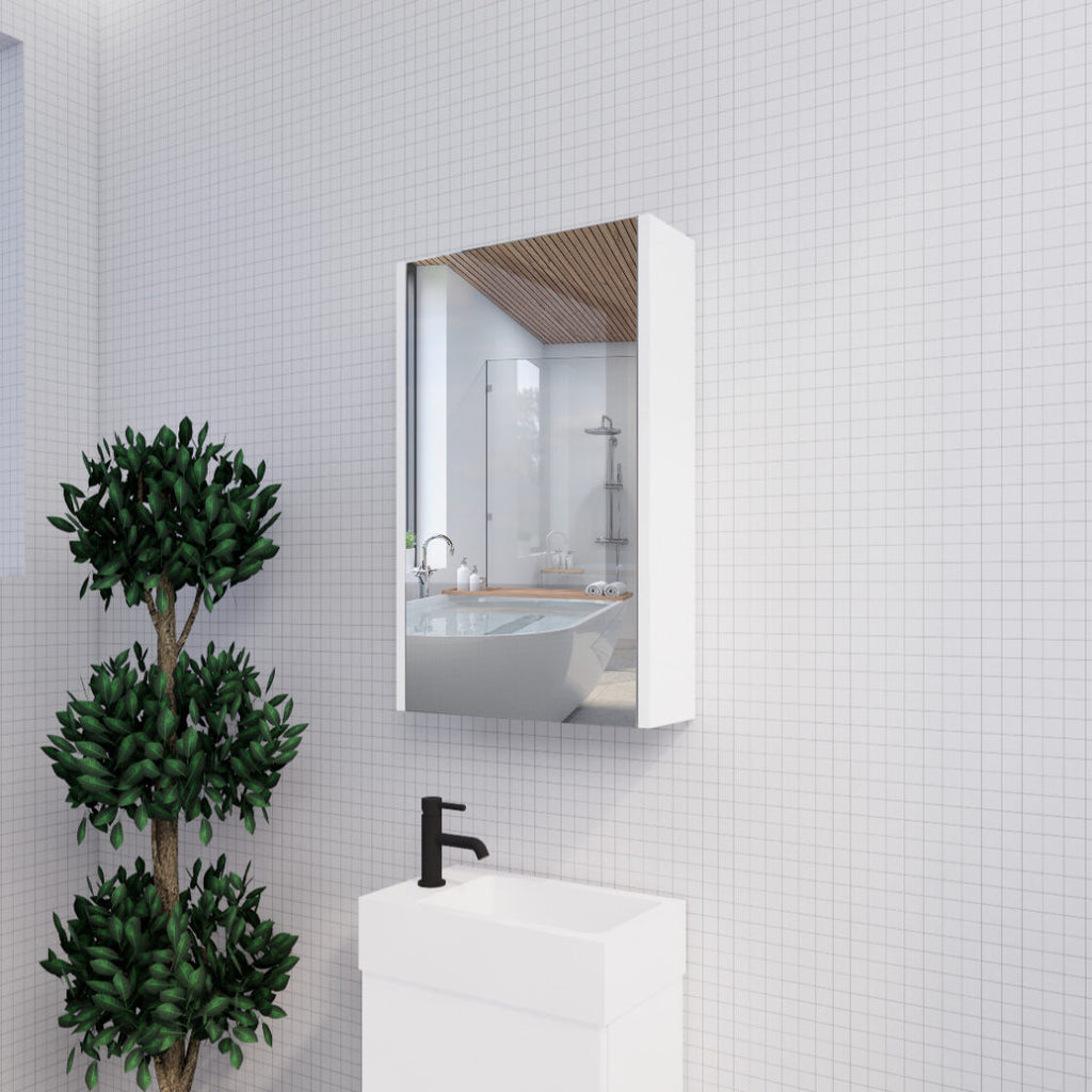 The RIVA Geneva Mirror Shaving Cabinet in Matte White offers a clean, contemporary look combined with functional storage. Crafted with a durable melamine finish and soft-close doors, this wall-mounted cabinet is designed for daily use while maintaining a minimalist aesthetic. The pencil edge copper-free mirror delivers lasting clarity, and the adjustable glass shelves provide flexible interior storage.