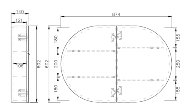 - 870mm (W) × 600mm (H) × 140mm (D)