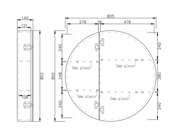 Dimensions: 800mm (W) x 800mm (H) x 140mm (D)
