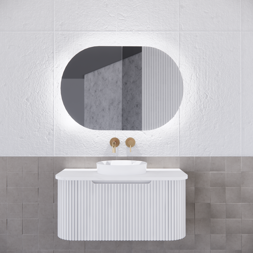 - 1 × RIVA Paris LED Oval Mirror Shaving Cabinet (Matte White or Matte Black)