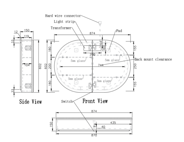 Integrated LED Backlighting – 6000K illumination, ideal for grooming and ambiance
