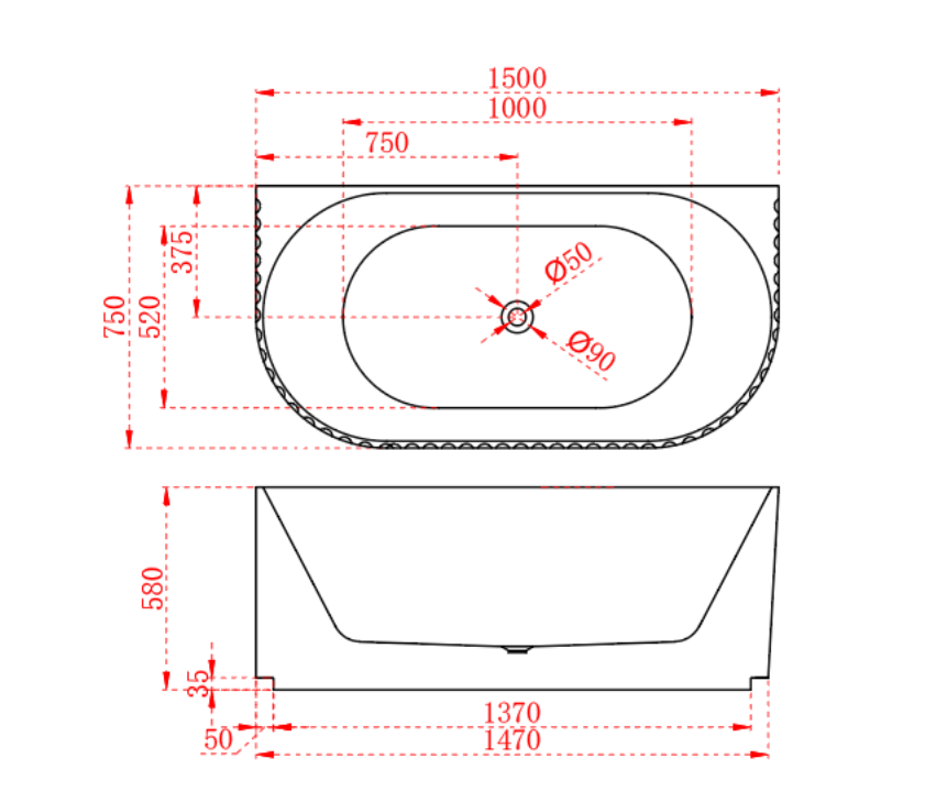 Featuring a sculpted fluted design and a practical back-to-wall configuration, this acrylic bathtub delivers both modern aesthetics and functionality. Choose from two premium finishes—Gloss White or Matte White—to complement your style.