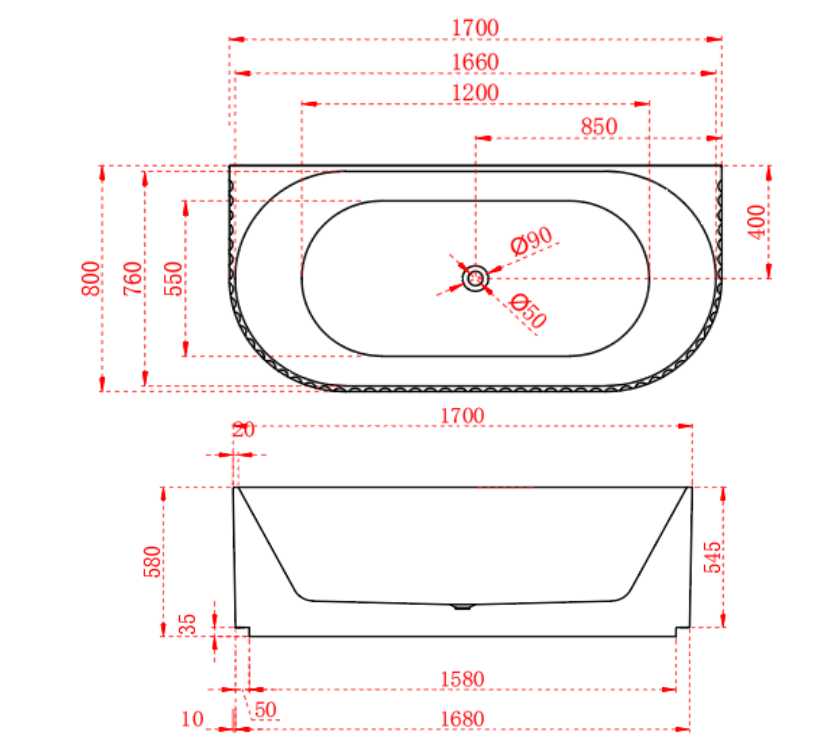 RIVA ROMA FLUTED BACK TO WALL BATHTUB – GLOSS WHITE & MATTE WHITE | Acrylic | Available in 1500mm & 1700mm Sizes