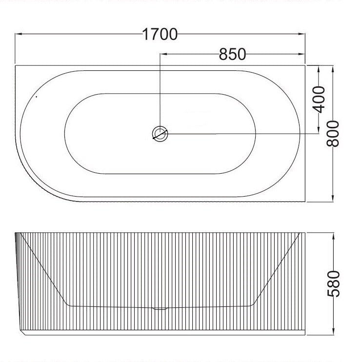 Sunny 4239 Fluted Corner Back Bathtub – Gloss White | Oval Acrylic Design | Available in 1500mm & 1700mm