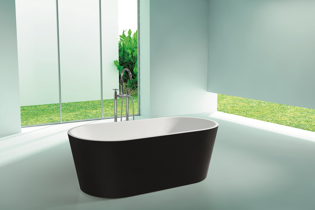 Sunny 8015 Black & White Oval Acrylic Freestanding Bathtub| Available in 1500mm & 1700mm