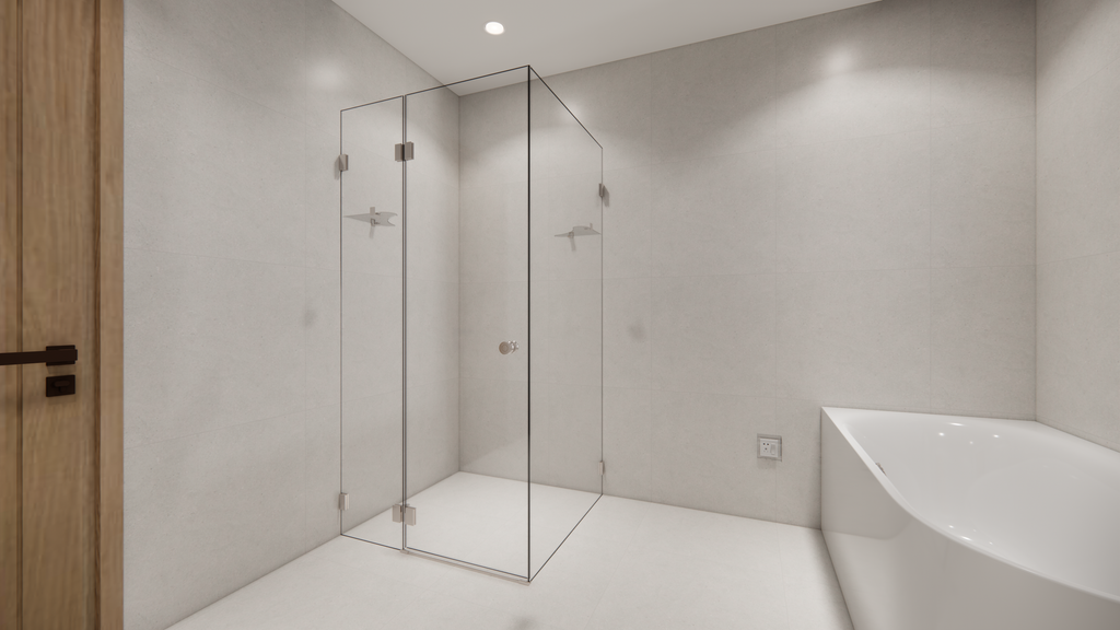 Upgrade your bathroom with this SUN Frameless Square Pivot Door Shower Screen — featuring a modern square shape, stylish knob handle, and a practical corner glass shelf. Crafted with safety tempered glass, this design combines elegance with everyday functionality, and is available in Chrome, Black, or Brushed Nickel fittings.