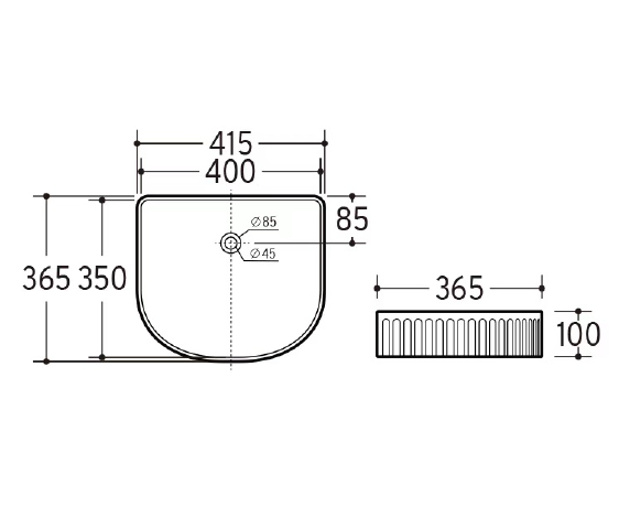 The Sunny Series Arched Fluted Counter Top Basin features an elegant oval shape with finely crafted vertical fluted detailing around the exterior. Its compact size and glossy white ceramic finish make it a refined choice for modern vanities, powder rooms, or small bathrooms where style and functionality are equally important.